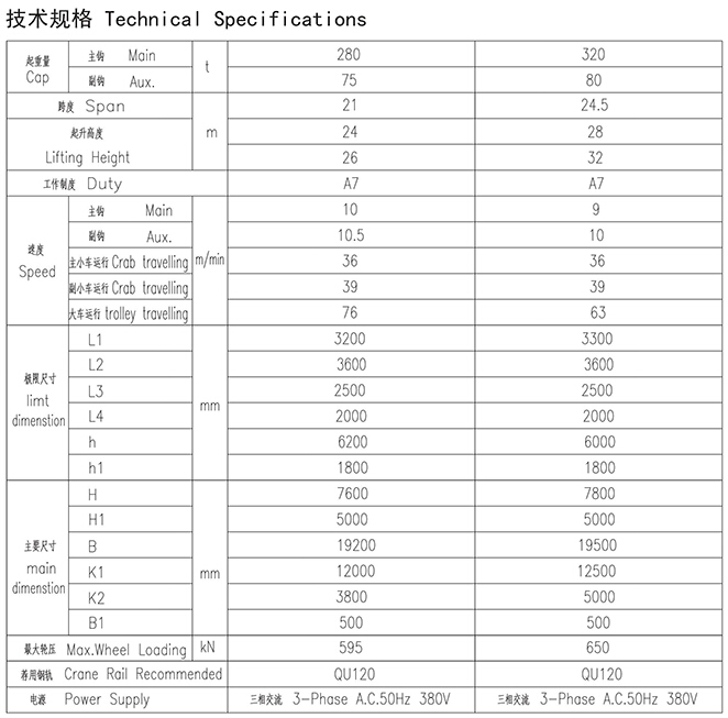 YZ型280、75~320、80t鑄造起重機