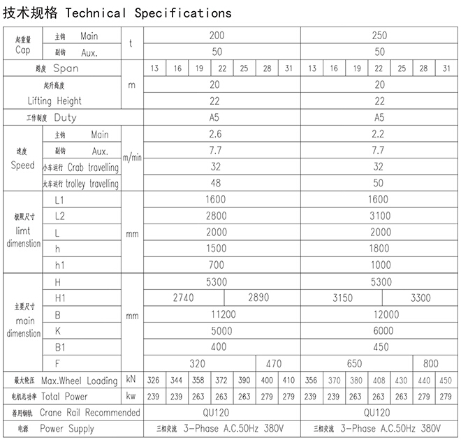 QD型(xíng)200、50t~250、50t吊鉤橋式起重機